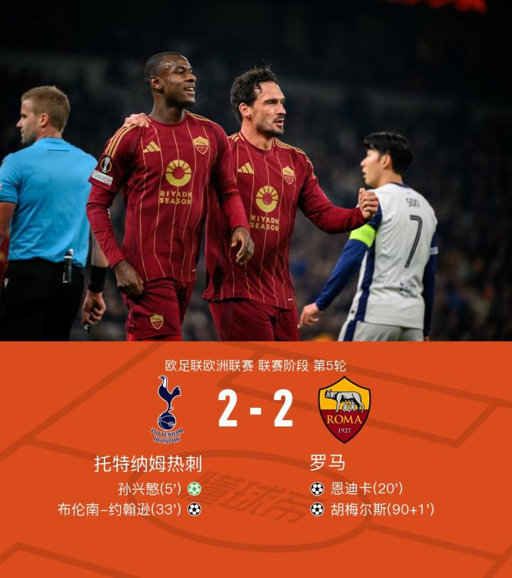 欧洲联赛:热刺与罗马战平,胡梅尔斯绝平救主